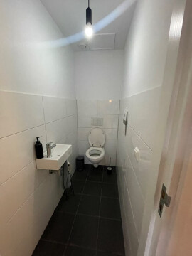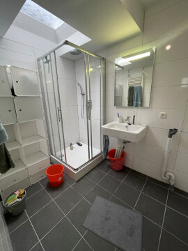 De vloer is voorzien van laminaat, wat niet alleen elegant oogt, maar ook gemakkelijk te onderhouden is. En laten we de badkamer niet vergeten, compleet met douche en wastafel.